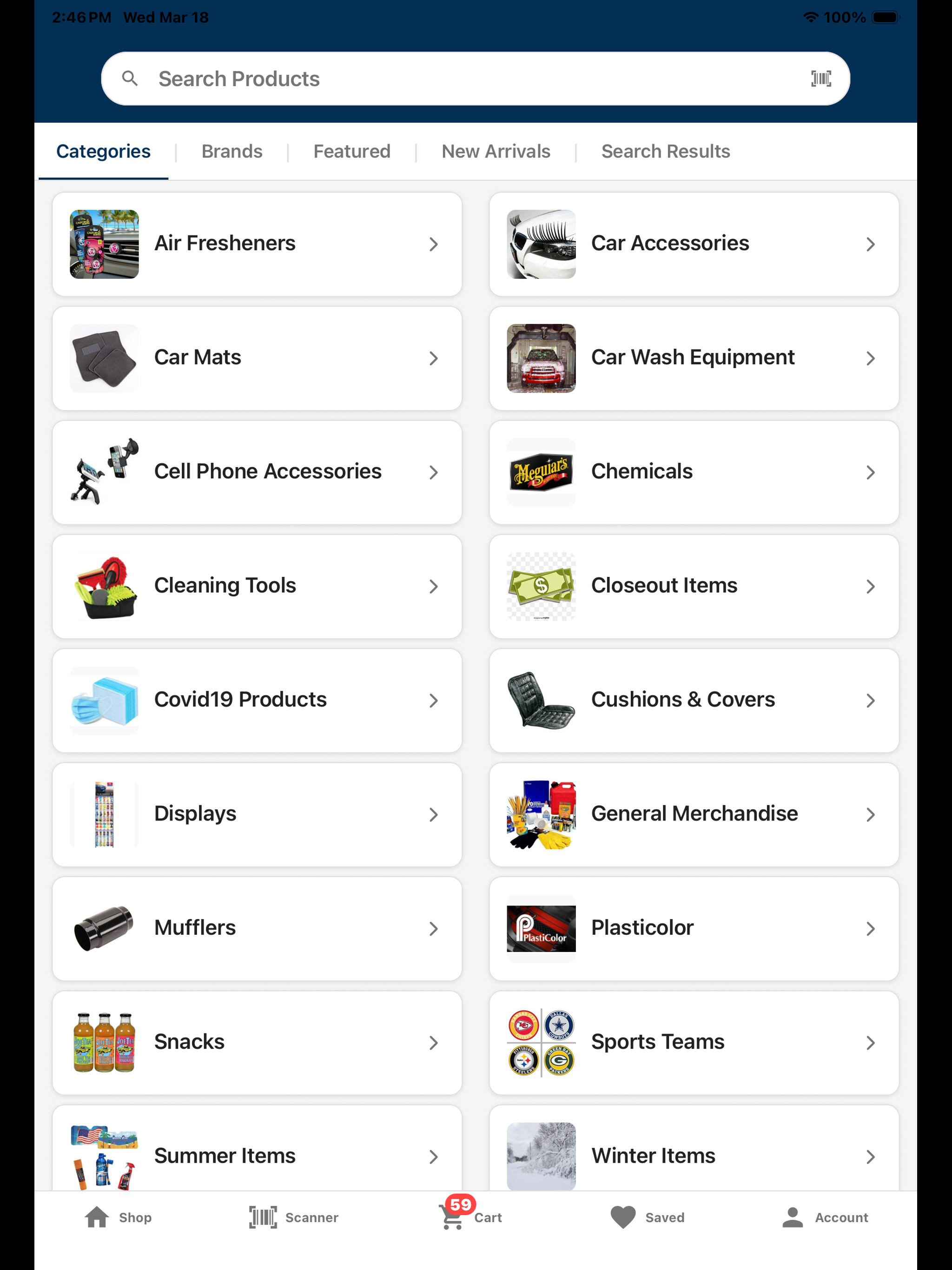 Browse wholesale inventory with over 6,000 products. Easily navigate through top categories and find the right products for your shelves.